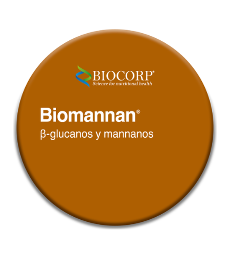 BIOMANNAN: Aditivo con un alto contenido de beta glucanos y mananoligosacáridos (MOS) obtenidos de paredes celulares de levadura Saccharomyces cerevisiae. Brinda efectos positivos a la salud intestinal stimula la función de los macrófagos y la respuesta inmune Favorece el desarrollo de bacterias benéficas.